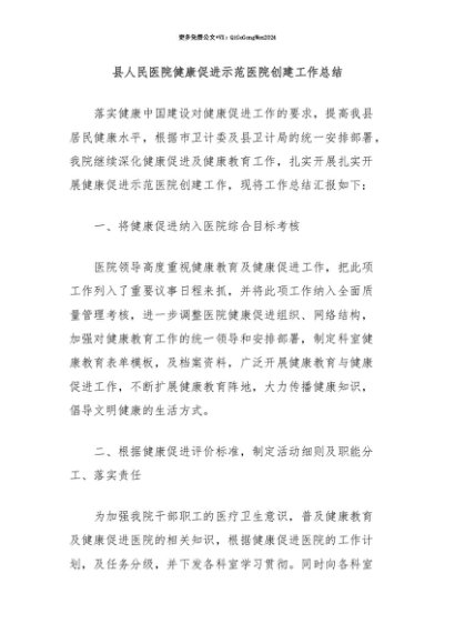 【七哥公文】2025年:【七哥公文】县人民医院健康促进示范医院创建工作总结+更多免费公文+VX:QiGeGongWen2024+更多免费公文+VX:QiGeGongWen2024