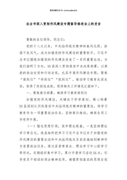 【七哥公文】2025年:【七哥公文】在全市深入贯彻作风建设专题督导推进会上的发言+更多免费公文+VX:QiGeGongWen2024+更多免费公文+VX:QiGeGongWen2024