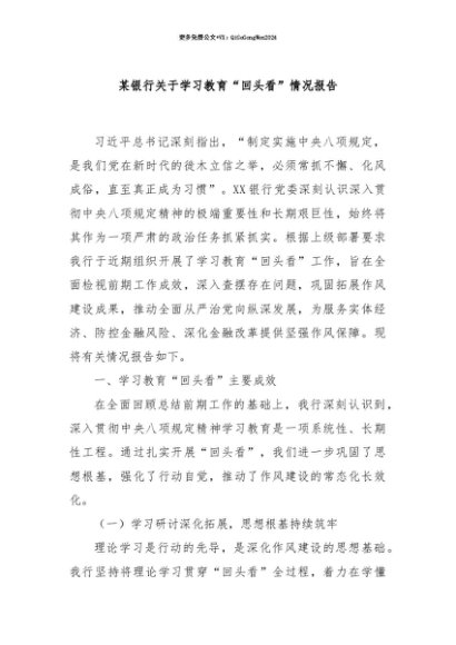 【七哥公文】2025年:【七哥公文】某银行关于学习教育“回头看”情况报告+更多免费公文+VX:QiGeGongWen2024+更多免费公文+VX:QiGeGongWen2024