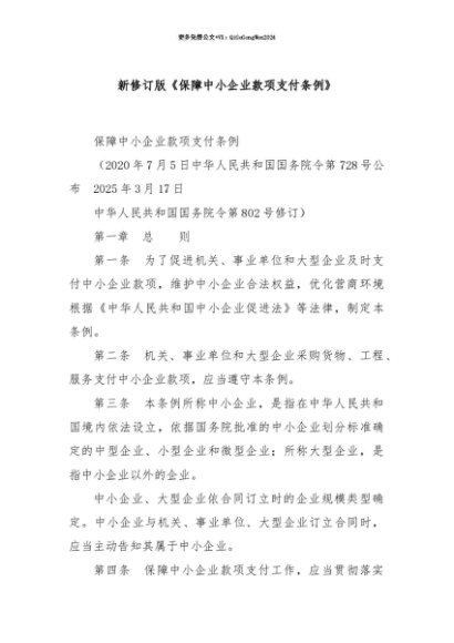 【七哥公文】2025年:【七哥公文】新修订版《保障中小企业款项支付条例》+更多免费公文+VX:QiGeGongWen2024+更多免费公文+VX:QiGeGongWen2024