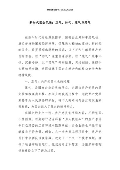 【七哥公文】2025年:【七哥公文】新时代国企风采:正气、帅气、底气与灵气+更多免费公文+VX:QiGeGongWen2024+更多免费公文+VX:QiGeGongWen2024