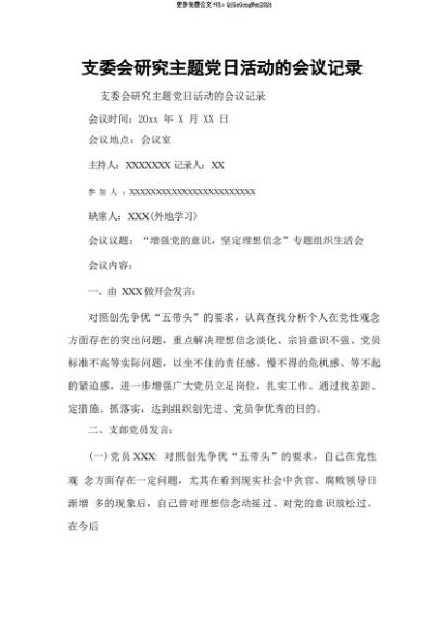 【七哥公文】2025年:【七哥公文】支委会研究主题党日活动的会议记录+更多免费公文+VX:QiGeGongWen2024+更多免费公文+VX:QiGeGongWen2024