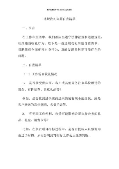【七哥公文】2025年:【七哥公文】违规收礼问题自查清单+更多免费公文+VX:QiGeGongWen2024+更多免费公文+VX:QiGeGongWen2024