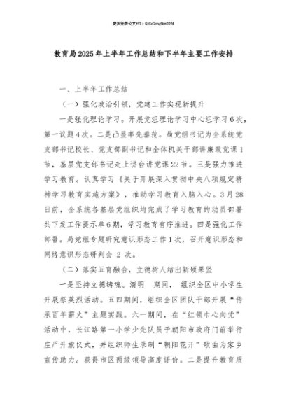 【七哥公文】2025年:【七哥公文】教育局2025年上半年工作总结和下半年主要工作安排+更多免费公文+VX:QiGeGongWen2024+更多免费公文+VX:QiGeGongWen2024