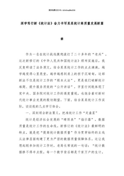 【七哥公文】2025年:【七哥公文】深学笃行新《统计法》奋力书写某某统计高质量发展新篇章+更多免费公文+VX:QiGeGongWen2024+更多免费公文+VX:QiGeGongWen2024