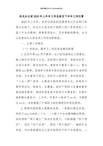 【七哥公文】2025年:【七哥公文】机关办公室2025年上半年工作总结及下半年工作打算+更多免费公文+VX:QiGeGongWen2024+更多免费公文+VX:QiGeGongWen2024