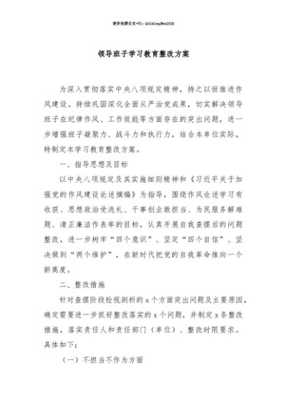 【七哥公文】2025年:【七哥公文】领导班子学习教育整改方案+更多免费公文+VX:QiGeGongWen2024+更多免费公文+VX:QiGeGongWen2024