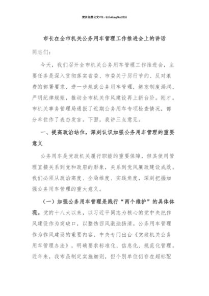 【七哥公文】2025年:【七哥公文】市长在全市机关公务用车管理工作推进会上的讲话+更多免费公文+VX:QiGeGongWen2024+更多免费公文+VX:QiGeGongWen2024