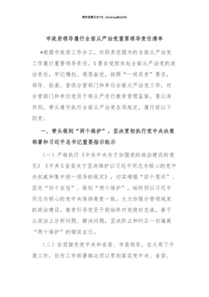 【七哥公文】2025年:【七哥公文】市政府领导履行全面从严治党重要领导责任清单+更多免费公文+VX:QiGeGongWen2024+更多免费公文+VX:QiGeGongWen2024