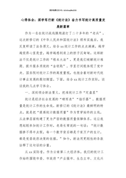 【七哥公文】2025年:【七哥公文】心得体会:深学笃行新《统计法》奋力书写统计高质量发展新篇章+更多免费公文+VX:QiGeGongWen2024+更多免费公文+VX:QiGeGongWen2024