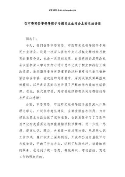 【七哥公文】2025年:【七哥公文】在市委常委市领导班子专题民主生活会上的总结讲话+更多免费公文+VX:QiGeGongWen2024+更多免费公文+VX:QiGeGongWen2024
