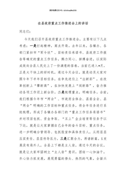 【七哥公文】2025年:【七哥公文】在县政府重点工作推进会上的讲话+更多免费公文+VX:QiGeGongWen2024+更多免费公文+VX:QiGeGongWen2024