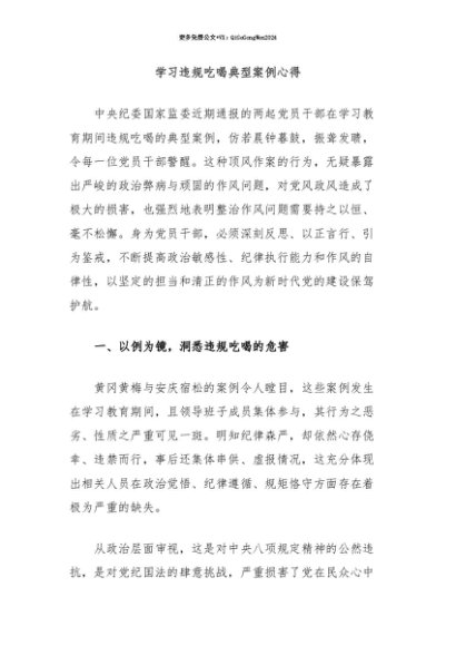 【七哥公文】2025年:【七哥公文】学习违规吃喝典型案例心得+更多免费公文+VX:QiGeGongWen2024+更多免费公文+VX:QiGeGongWen2024