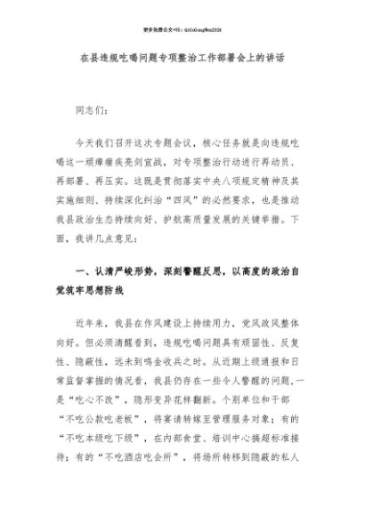 【七哥公文】2025年:【七哥公文】在县违规吃喝问题专项整治工作部署会上的讲话+更多免费公文+VX:QiGeGongWen2024+更多免费公文+VX:QiGeGongWen2024