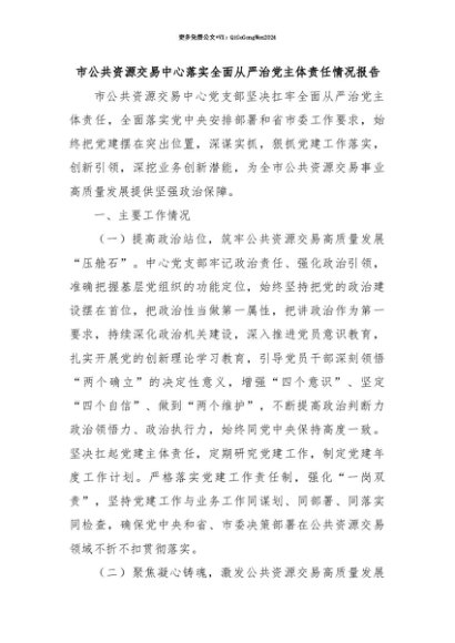 【七哥公文】2025年:【七哥公文】市公共资源交易中心落实全面从严治党主体责任情况报告+更多免费公文+VX:QiGeGongWen2024+更多免费公文+VX:QiGeGongWen2024