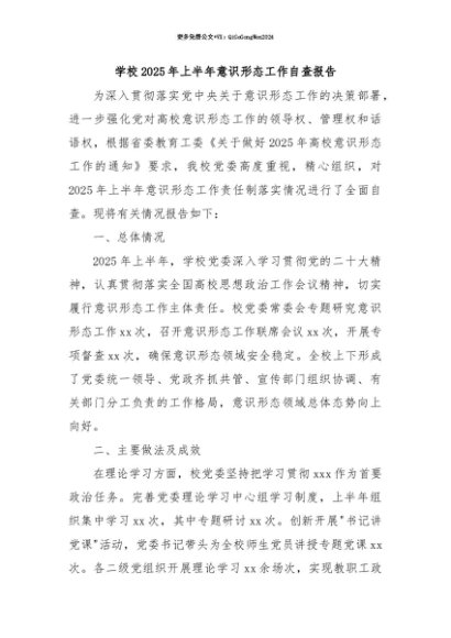 【七哥公文】2025年:【七哥公文】学校2025年上半年意识形态工作自查报告+更多免费公文+VX:QiGeGongWen2024+更多免费公文+VX:QiGeGongWen2024