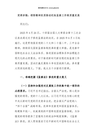 【七哥公文】2025年:【七哥公文】党课讲稿:领悟精神实质推动纪检监察工作高质量发展+更多免费公文+VX:QiGeGongWen2024+更多免费公文+VX:QiGeGongWen2024
