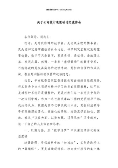 【七哥公文】2025年:【七哥公文】关于云南统计造假研讨交流体会+更多免费公文+VX:QiGeGongWen2024+更多免费公文+VX:QiGeGongWen2024