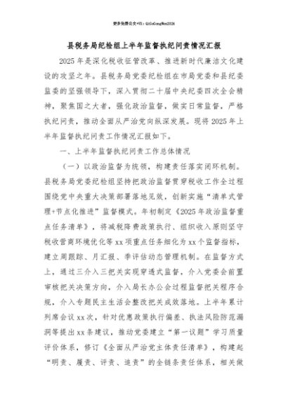 【七哥公文】2025年:【七哥公文】县税务局纪检组上半年监督执纪问责情况汇报+更多免费公文+VX:QiGeGongWen2024+更多免费公文+VX:QiGeGongWen2024