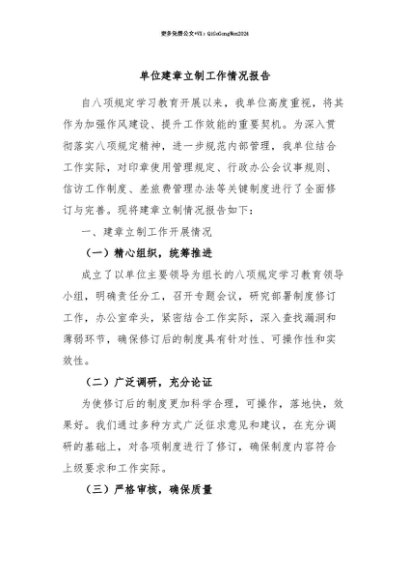 【七哥公文】2025年:【七哥公文】单位建章立制工作情况报告+更多免费公文+VX:QiGeGongWen2024+更多免费公文+VX:QiGeGongWen2024
