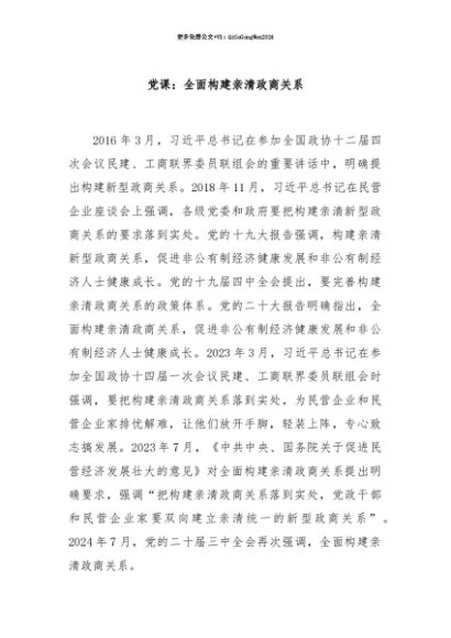 【七哥公文】2025年:【七哥公文】党课:全面构建亲清政商关系+更多免费公文+VX:QiGeGongWen2024+更多免费公文+VX:QiGeGongWen2024