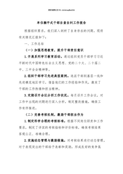 【七哥公文】2025年:【七哥公文】单位躺平式干部自查自纠工作报告+更多免费公文+VX:QiGeGongWen2024+更多免费公文+VX:QiGeGongWen2024