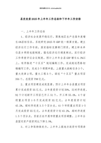 【七哥公文】2025年:【七哥公文】县发改委2025年上半年工作总结和下半年工作安排+更多免费公文+VX:QiGeGongWen2024+更多免费公文+VX:QiGeGongWen2024