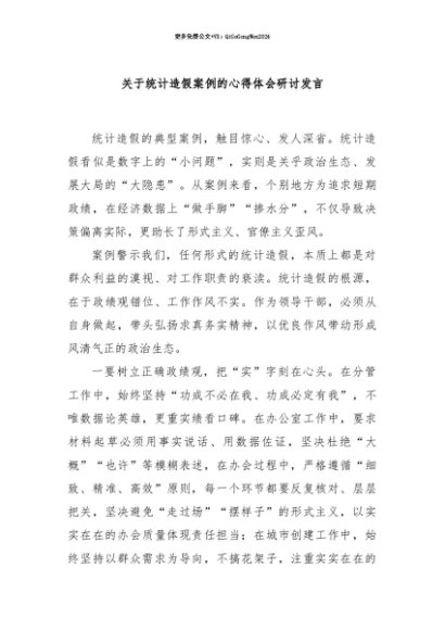 【七哥公文】2025年:【七哥公文】关于统计造假案例的心得体会研讨发言+更多免费公文+VX:QiGeGongWen2024+更多免费公文+VX:QiGeGongWen2024