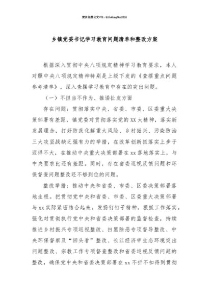 【七哥公文】2025年:【七哥公文】乡镇党委书记学习教育问题清单和整改方案+更多免费公文+VX:QiGeGongWen2024+更多免费公文+VX:QiGeGongWen2024