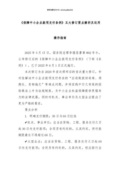 【七哥公文】2025年:【七哥公文】《保障中小企业款项支付条例》五大修订要点解析及运用操作指南+更多免费公文+VX:QiGeGongWen2024+更多免费公文+VX:QiGeGongWen2024