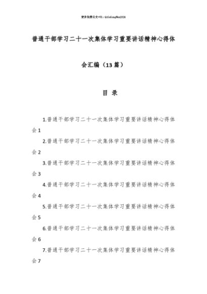 【七哥公文】2025年:【七哥公文】(13篇)普通干部学习二十一次集体学习重要讲话精神心得体会汇编+更多免费公文+VX:QiGeGongWen2024+更多免费公文+VX:QiGeGongWen2024