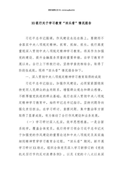 【七哥公文】2025年:【七哥公文】XX银行关于学习教育“回头看”情况报告+更多免费公文+VX:QiGeGongWen2024+更多免费公文+VX:QiGeGongWen2024