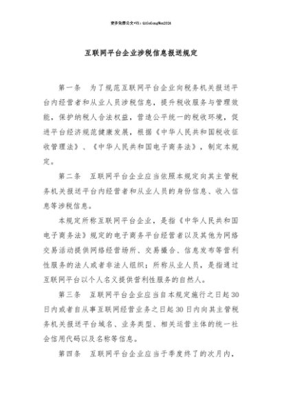 【七哥公文】2025年:【七哥公文】互联网平台企业涉税信息报送规定+更多免费公文+VX:QiGeGongWen2024+更多免费公文+VX:QiGeGongWen2024