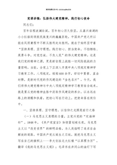 【七哥公文】2025年:【七哥公文】党课讲稿:弘扬伟大建党精神,践行初心使命+更多免费公文+VX:QiGeGongWen2024+更多免费公文+VX:QiGeGongWen2024