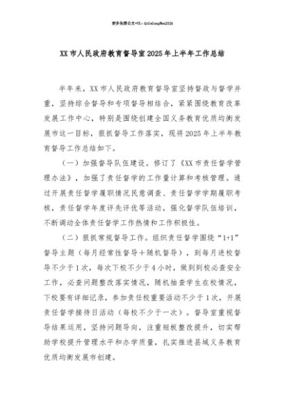 【七哥公文】2025年:【七哥公文】XX市人民政府教育督导室2025年上半年工作总结+更多免费公文+VX:QiGeGongWen2024+更多免费公文+VX:QiGeGongWen2024