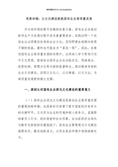 【七哥公文】2025年:【七哥公文】党课讲稿:以文化建设赋能国有企业高质量发展+更多免费公文+VX:QiGeGongWen2024+更多免费公文+VX:QiGeGongWen2024