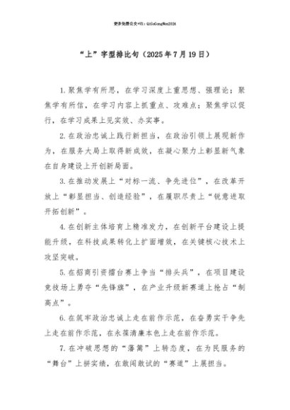 【七哥公文】2025年:【七哥公文】“上”字型排比句(2025年7月19日)+更多免费公文+VX:QiGeGongWen2024+更多免费公文+VX:QiGeGongWen2024