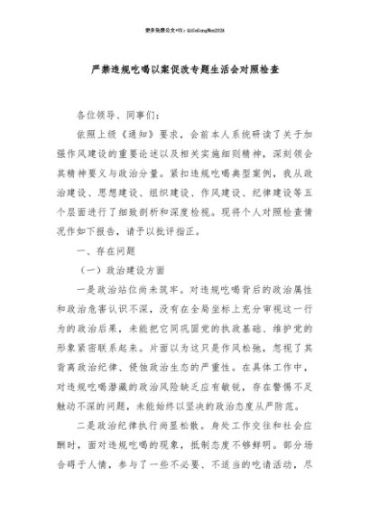 【七哥公文】2025年:【七哥公文】严禁违规吃喝以案促改专题生活会对照检查+更多免费公文+VX:QiGeGongWen2024+更多免费公文+VX:QiGeGongWen2024