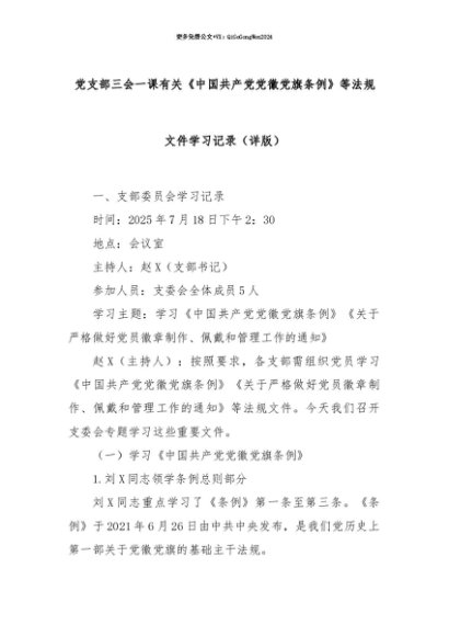【七哥公文】2025年:【七哥公文】党支部三会一课有关《中国共产党党徽党旗条例》等法规文件学习记录(详版)+更多免费公文+VX:QiGeGongWen2024+更多免费公文+VX:QiGeGongWen2024