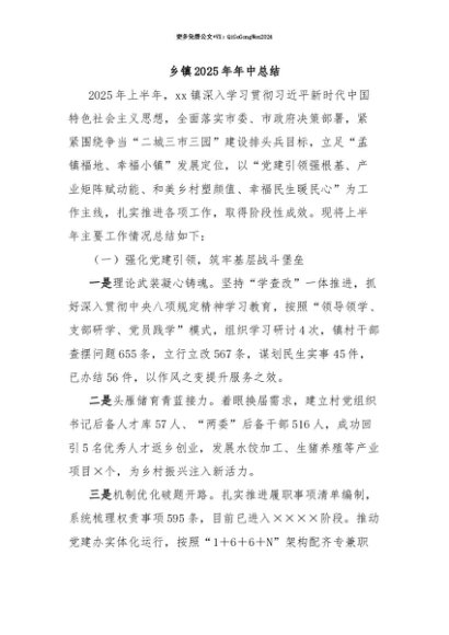 【七哥公文】2025年:【七哥公文】乡镇2025年年中总结+更多免费公文+VX:QiGeGongWen2024+更多免费公文+VX:QiGeGongWen2024