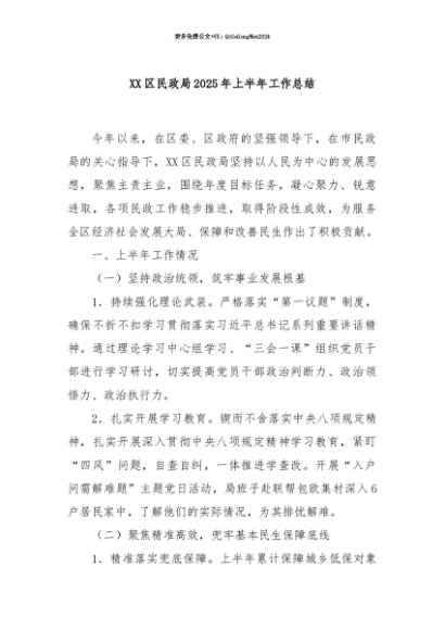 【七哥公文】2025年:【七哥公文】XX区民政局2025年上半年工作总结+更多免费公文+VX:QiGeGongWen2024+更多免费公文+VX:QiGeGongWen2024