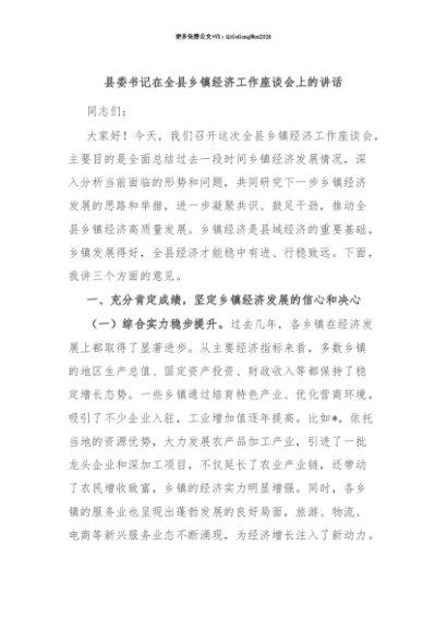 【七哥公文】2025年:【七哥公文】县委书记在全县乡镇经济工作座谈会上的讲话+更多免费公文+VX:QiGeGongWen2024+更多免费公文+VX:QiGeGongWen2024