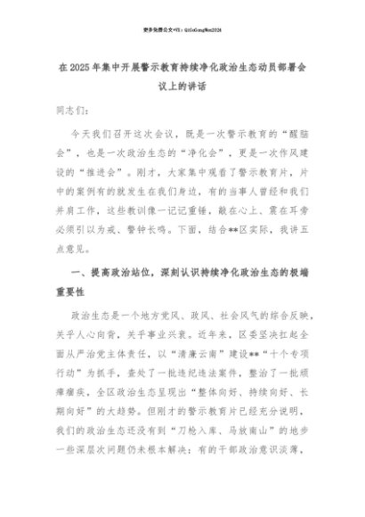 【七哥公文】2025年:【七哥公文】在2025年集中开展警示教育持续净化政治生态动员部署会议上的讲话+更多免费公文+VX:QiGeGongWen2024+更多免费公文+VX:QiGeGongWen2024