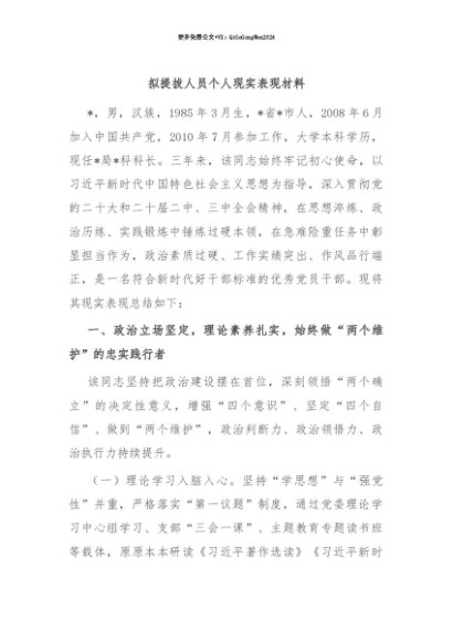 【七哥公文】2025年:【七哥公文】拟提拔人员个人现实表现材料+更多免费公文+VX:QiGeGongWen2024+更多免费公文+VX:QiGeGongWen2024