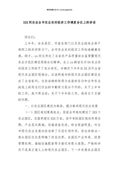 【七哥公文】2025年:【七哥公文】XXX同志在全市农业农村经济工作调度会议上的讲话+更多免费公文+VX:QiGeGongWen2024+更多免费公文+VX:QiGeGongWen2024
