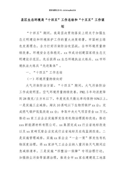 【七哥公文】2025年:【七哥公文】县区生态环境局“十四五”工作总结和“十五五”工作谋划+更多免费公文+VX:QiGeGongWen2024+更多免费公文+VX:QiGeGongWen2024