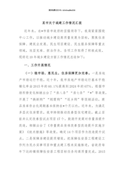 【七哥公文】2025年:【七哥公文】某市关于城建工作情况汇报+更多免费公文+VX:QiGeGongWen2024+更多免费公文+VX:QiGeGongWen2024