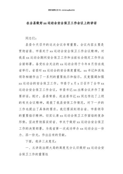 【七哥公文】2025年:【七哥公文】在全县做好xx运动会安全保卫工作会议上的讲话+更多免费公文+VX:QiGeGongWen2024+更多免费公文+VX:QiGeGongWen2024
