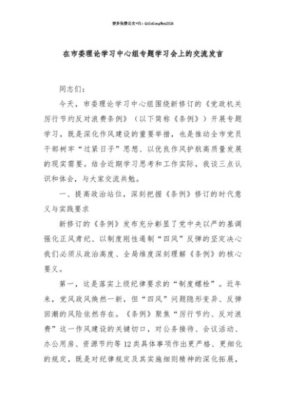 【七哥公文】2025年:【七哥公文】在市委理论学习中心组专题学习会上的交流发言+更多免费公文+VX:QiGeGongWen2024+更多免费公文+VX:QiGeGongWen2024