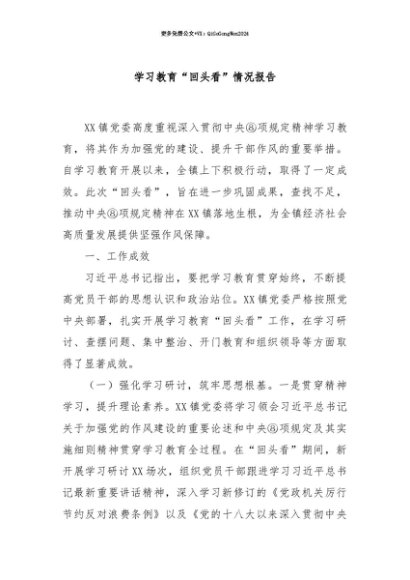 【七哥公文】2025年:【七哥公文】学习教育“回头看”情况报告+更多免费公文+VX:QiGeGongWen2024+更多免费公文+VX:QiGeGongWen2024